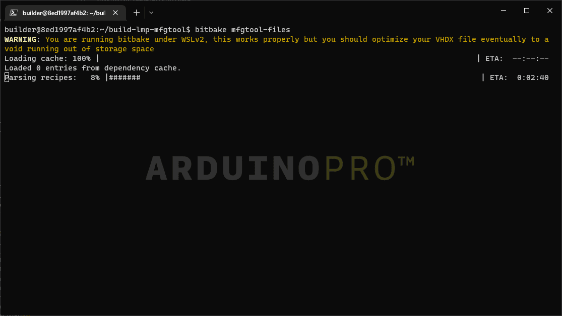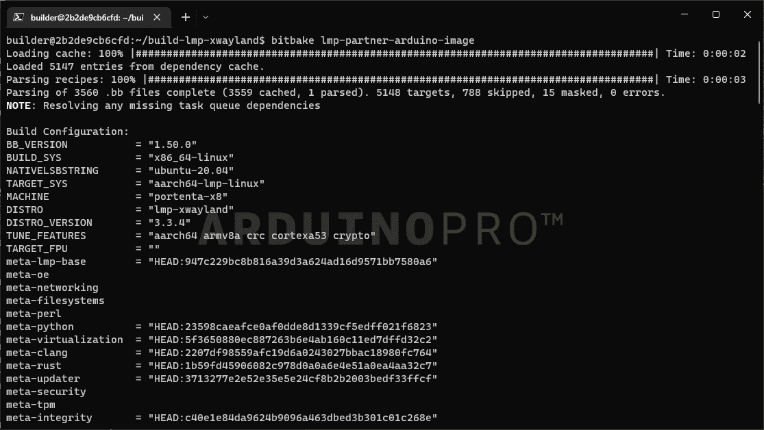1bitbake lmp-partner-arduino-imageThis process may take ~7 hours depending on the build host