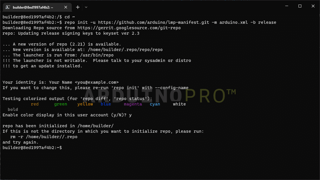 Now that you are running inside the Docker Image, you can use tools like git-repo, which is already installed.