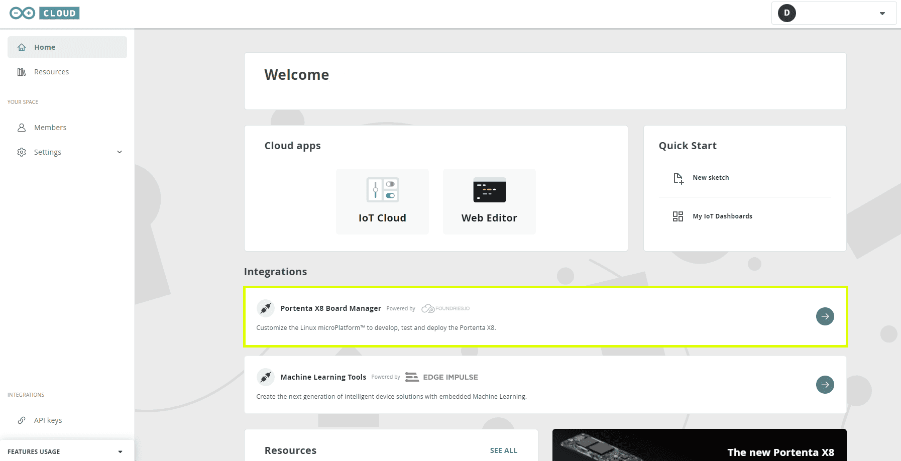 Click here to learn more about Arduino Cloud for business and the Portenta X8 Board Manager add-on. Otherwise, check the dedicated section of this user manual to start working with Portenta X8 Manager.