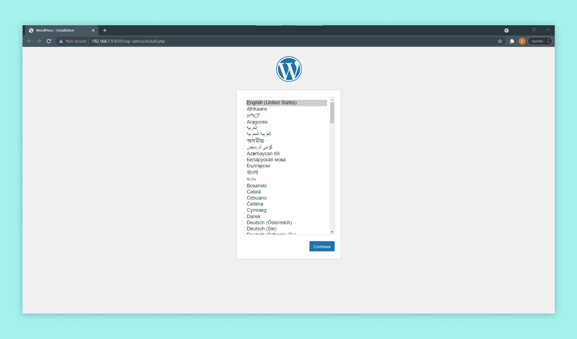 You are now free to go through the WordPress setup process and configure it however you like.