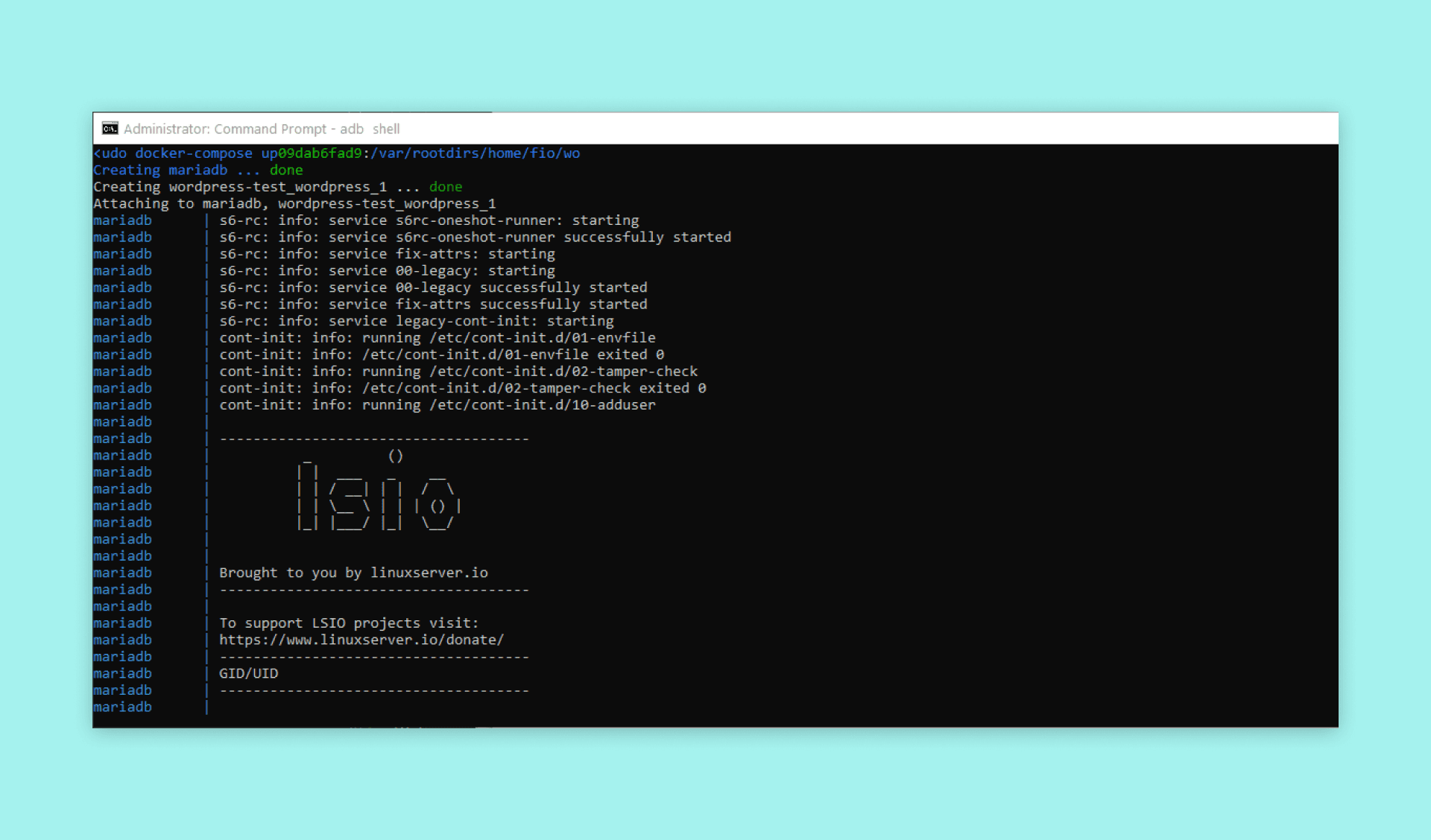 docker compose up -d. Using the -d tag in the command will allow running these containers in the background. If you run the command without the -d tag, the application will exit when you close the terminal.When the command is executed it will start installing the WordPress and MariaDB containers. This can take a while. To get the output from the containers use: