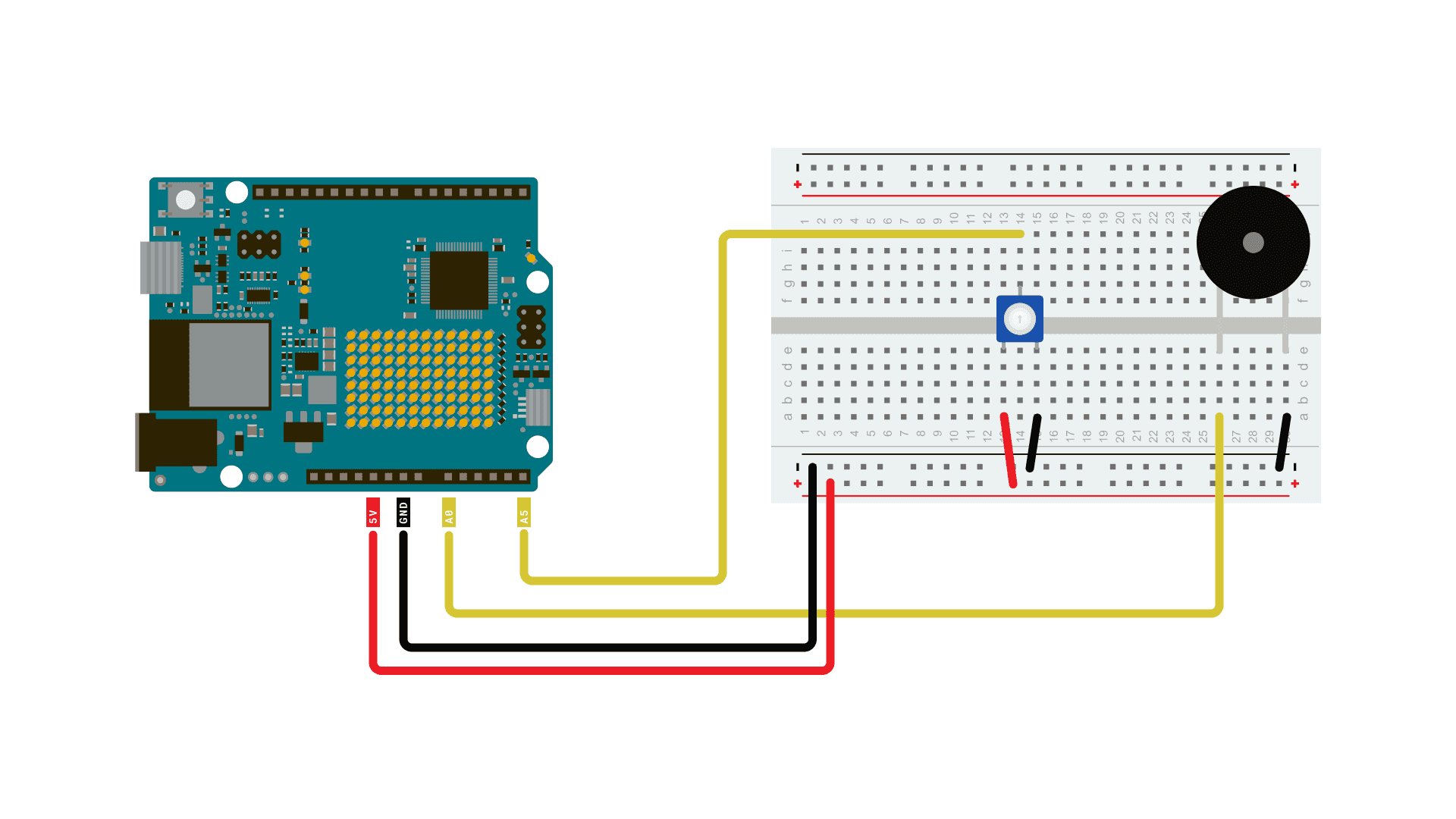 Now try twisting the potentiometer, and listen to how the sound changes.