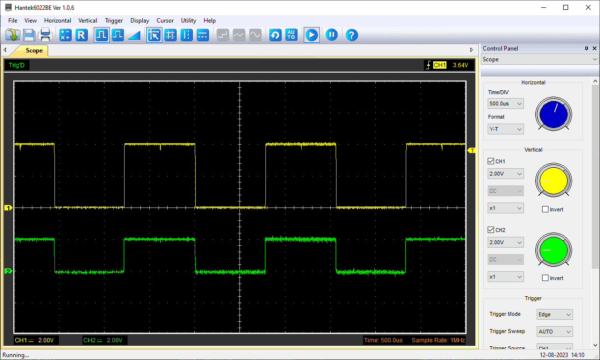 Below is a capture of an oscilloscope in which an approx. 2 V square wave (green, channel 2) is amplified to a 4 V square wave (yellow, channel 1) with the circuit shown below. The input signal was generated by a function generation (and shared GND was connected).