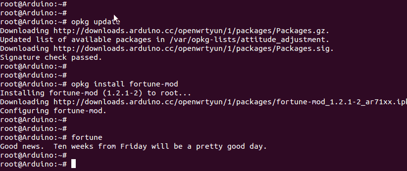 $ opkg install fortune-mod- remove: Removes a previously installed package.